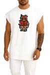 Oversize Şapkalı Graffiti Teddy Bear Göğüs Baskılı Atlet