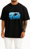 Oversize Scuba Diving Silüet Göğüs Tasarımlı Unisex T-Shirt