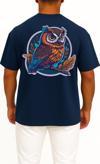 Oversize Sticker Owl Mascot Cep ve Sırt Tasarımlı Unisex T-Shirt