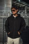 Oversize Tam Fermuarlı Uzun Kol Hırka - Siyah