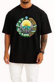 Bahriyeli Collection Oversize Tashkent Emblem Of Uzbekistan Coat Of Arms Göğüs Tasarımlı Unisex T-Shirt