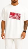 Bahriyeli Collection Oversize United States Rubber Stamp Drawing Göğüs Tasarımlı Unisex T-Shirt