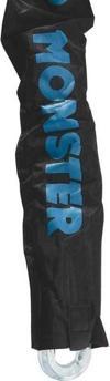 Monster XL zincir kilidi, yüksek kaliteli Ni-Cro-Mo alaşımlı çelikten yapılmış güçlü bir 14,5 mm zincire sahiptir. Zincir, hasarı önlemeye ve kullanımını kolaylaştırmaya yardımcı olmak için koruyucu bir kumaş kılıfa sahiptir.