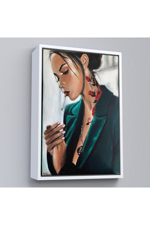 Ahşap çerçeveli Sigara Içen Seksi Kadın Tablosu-7921