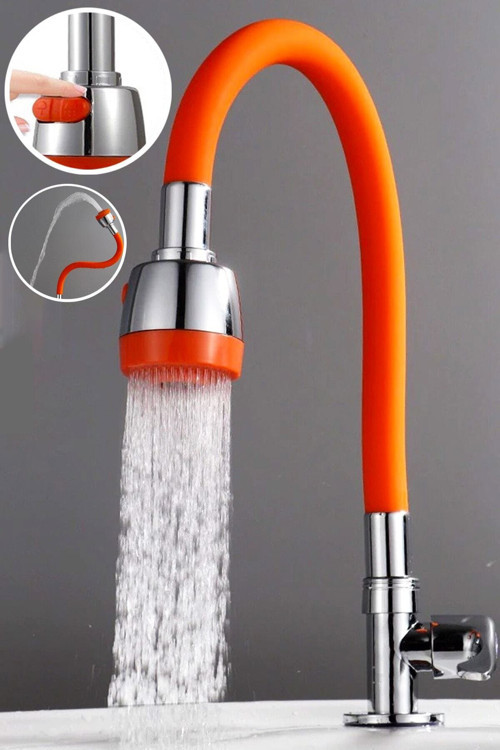 Esnek Kıvrılabilir Turuncu Silikon Oynar Başlıklı Musluk Bataryası Başlığı Kubar Tüm Standart Musluklar İle Uyumlu Tazyikli veya Fiskiye Şeklinde Su Akıtma Fonksiyonlu mutfak evyelerinde olmazsa olmaz musluk çözümü, bulaşık yıkama, meyve ve sebze yıkama sırasında, dönebilir başlığı sayesinde her yöne kolayca çevrilebilir, mutfakta işlerinizi kolaylaştıracak.