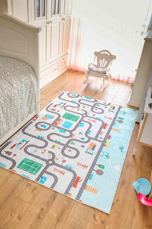 Aden Oyun Halısı Makinede Yıkanabilir Kaymaz Taban Leke Tutmaz Çocuk Odası Halısı