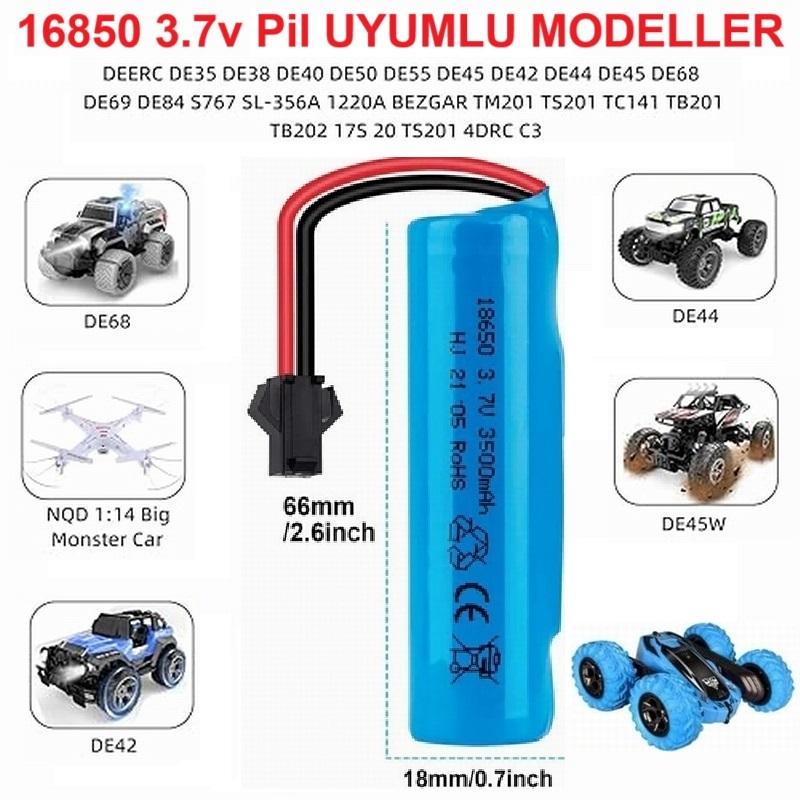 Oyuncak Araba Pili Şarj Cihazı + 3500 mAh 3.7V 18650 Li-Ion Pil