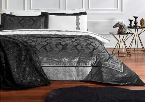 11 Parça Çeyiz Seti (Battaniye+Nevresim Takımı+Yatak Örtüsü)-Velours Antrasit