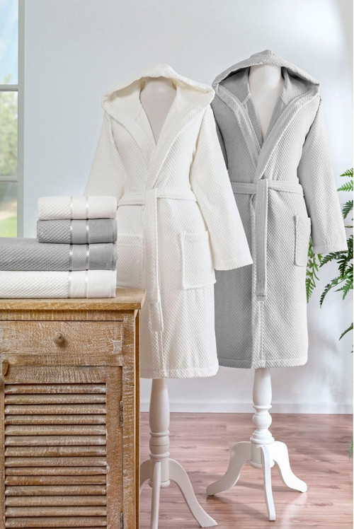 Bornoz:143x116 cm (1 Adet), Bornoz:131x107 cm (1 Adet), Banyo Havlusu:90x150 cm (2 Adet), El Havlusu:50x90 cm (2 Adet),