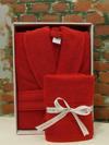 Set halinde sunulan bu bornoz, hem şıklığı hem de pratikliği bir arada getirir