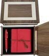 Özel Ahşap Kutulu Kırmızı Deri Defter Ve Kalem Set