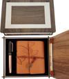 Özel Ahşap Kutulu Taba Deri Defter ve Bakır Roller Kalem Set