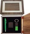 Özel Ahşap Kutulu Yeşil Anahtarlık Kalem ve Çakmak Set