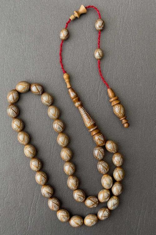 Bu muhteşem tesbih, Muhammed Erdem'in özel çalışması olan kuka işleme ve Muhammed Serkan'ın ustalığıyla yapılan gümüş çakma işlemi ile öne çıkıyor. İki ustamızın emeğiyle hayat bulan bu tesbih, göz alıcı detayları