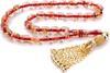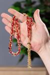 İri Taneli Özel Dizayn Püsküllü Kırmızı Altın Varaklı Toz Kehribar Tesbih