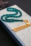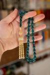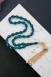Özel Gold Püsküllü Su Yeşili Ateş Kehribar Tesbih