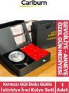 Carlburn Özel Gün Hediye Sevgiliye Anneye Arkadaşa Kırmızı Gül Dolu Kutulu İstiridye İnci Kolye Seti