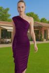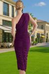 Ersefa Özel Kesim Tek Omuzlu Sandy Dokuma Midi Abiye Elbise Özenle Seçilmiş Özel Tasarım Rahat Ve Şık