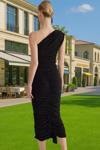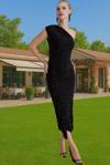 Ersefa Özel Kesim Tek Omuzlu Sandy Dokuma Midi Abiye Elbise Özenle Seçilmiş Özel Tasarım Rahat Ve Şık