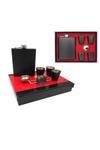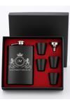 Özel Kutusunda Aslan Motifli İsme Kişiye Özel Cep Matarası Siyah Çelik Matara Hediye Seti 4 Shot Bardaklı