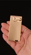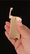 Bu lüks çakmak, ayna parlaklığındaki gold metal gövdesi ve zarif, ince (slim) yapısıyla göz kamaştırır. Üst kısımdaki benzersiz mekanik tetik sistemi, modern bir dokunuşla güvenilir ateşleme sağlar. Parlak yüzeyi ve sade tasarımı, premium bir görünüm sunar.
