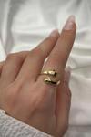 Pirinç Gümüş Renk Zirkon Taş Detay Kadın Yüzük - Image 1