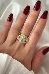 Eva Jewelry Baget Taşlı Gümüş Kaplama Ayarlanabilir Kadın Yüzük