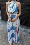 Ürün Adı:Dipmoda kadın halter yaka astarlı maxi şifon elbise DPMY3242
