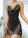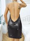 Beruflic Özel Tasarım Siyah Payetli Zincir Detaylı Parlak Işıltılı Sırt Dekolteli Fantezi Mini Club Elbisesi