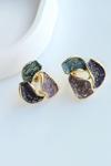 Leostone Özel Tasarım Üçgen Çok Renkli Mineli Kararmaz Renk Atmaz Kadın Çelik Küpe