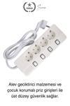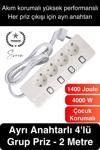 Svein Özel Üretim 4'lü Ayrı Anahtarlı 2 Metre Akım Korumalı Grup Priz 1400 Joule 4000W Çoklu Uzatma Kablo