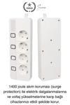 4'lü çıkışa sahip, ayrı anahtarlı ve akım korumalı yüksek performanslı bir grup prizdir. 1400 joule akım koruması (surge protection) ile elektrik dalgalanmalarına ve voltaj yükselmelerine karşı bağlı cihazlarınızı etkili şekilde korur. 4000 watt güç kapasitesi ve 16A akım taşıma kapasitesi ile yüksek güç gerektiren cihazları sorunsuz çalıştırabilir. Her priz çıkışı için ayrı anahtar bulunması sayesinde enerji tasarrufu sağlar ve cihazları tek tek kontrol edebilirsiniz. 2 metre uzunluğundaki 3x1.5mm² kalın kesitli kablosu ile güvenli ve uzun ömürlü kullanım sunar. Alev malzemesi ve çocuk korumalı priz girişleri ile üst düzey güvenlik sağlar. Malaysia'da üretilmiş olan bu ürün, yüksek kalite standartlarına sahiptir.