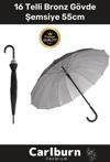 Carlburn Özel Üretim Otomatik Mekanizma Baston Tip Rüzgar Korumalı Fiber 16 Telli Bronz Gövde Şemsiye 55cm