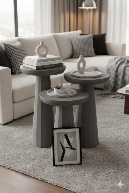 ÖZKA HOBİ GRİ BOYALI VERNİKLİ MANTAR SEHPA,ORTA SEHPA