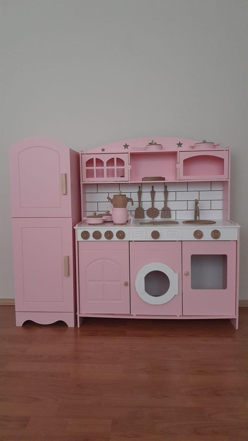 Çocuk sağlığa zararsız su bazlı akrilik boya ile 2 kat boyama yapılmıştır. Ürün rengi olarak bebek pembe ve beyaz detaylar antrasit gri renk kullanılmıştır.