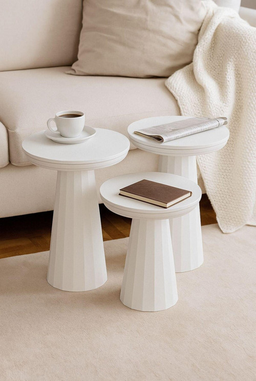 Ev dekorasyonunda sade ama etkili bir dokunuş arıyorsanız, bu sehpa tam size göre. ÜRÜN BEYAZ RENKTE 3 'LÜ TAKIM OLARAK GÖNDERİLMEKTEDİR.