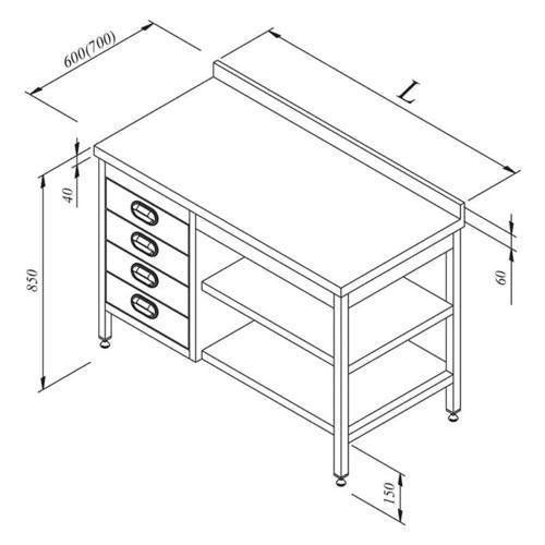 Çalışma Tezgahı Ara Raflı Gn Çekmeceli Sırtlı 140x70 cmÇalışma Tezgahı