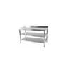 | AÇIKLAMA | * Ürün konstrüksiyonu paslanmaz çelikten mamuldür * Üst tabla alınları 40 mm ve sırt 60 mm * Tezgah ayakları 40x40 kutu profil * Paslanmaz çelik taban ve ara raflı * Ayarlanabilir plastik rotil ayaklı |