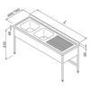 | AÇIKLAMA | * Ürün konstrüksiyonu paslanmaz çelikten mamuldür * Ürün sağ damlalıklı * Üst tabla alınları 40 mm ve sırt 60 mm * Üst tabla pres baskı imal edilip bölgesel indirimli * Üst tablaya 2 adet 600x500x300 mm ölçülü pres baskı monoblok evye gözü dikiş kaynak yöntemiyle kaynaklı * Tezgah ayakları 40x40 kutu profil * Ayarlanabilir plastik rotil ayaklı |