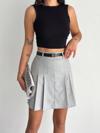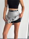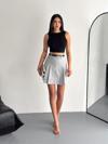 - Gri renkli, yaz ayları için ideal ince dokuma kumaştan üretilmiş şort etek.