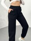 Ozy Fashion Kadın Siyah Kışlık Kalın Içi Polarlı Yüksek Bel Paçası Lastikli Basic Jogger Eşofman Altı Siyah XL