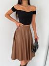 Kloş silueti ile feminen ve şık bir görünüm sunar