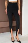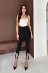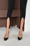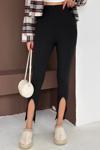 Paçası Fermuarlı Fitilli Tayt Siyah