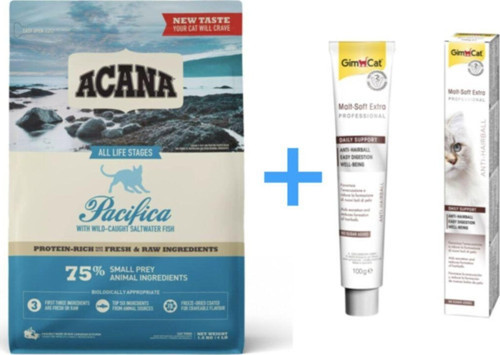 Kediler için tam besleyici mama olan Acana Pacifica, evcil hayvan maması üretiminde hayvanların doğal yaşamdaki beslenme alışkanlıklarını örnek alarak oluşturulan formüle sahiptir. % 65'i günlük elde edilen taze ringa balığı, dil balığı ve somon balığından üretilen mama hiçbir katkı maddesi içermemektedir. İçeriğindeki balıklardan elde edilen omega-3 EPA ve DHA deri ve tüy bakımı için oldukça faydalıdır, yüksek protein ve düşük karbonhidrat oranıyla üretilen Acana Pacifica tahıl içermez.