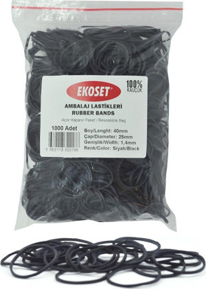 Ekoset Siyah Paket Ambalaj Toka Para Lastiği 1000 Adet 40mm