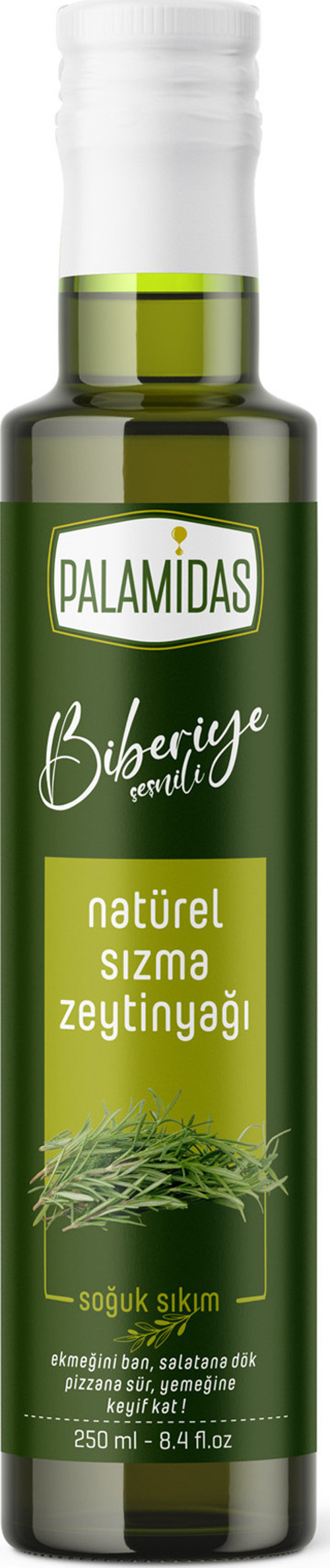 Akdeniz mutfağının ferahlatıcı ruhunu sofralarınıza taşıyoruz. Palamidas Biberiye Aromalı Zeytinyağı, özenle toplanan taze biberiye dallarının, en kaliteli soğuk sıkım zeytinyağı ile buluştuğu aromatik bir şölendir. Mutfağınızda profesyonel bir şef dokunuşu arıyorsanız, bu şişe tam size göre.