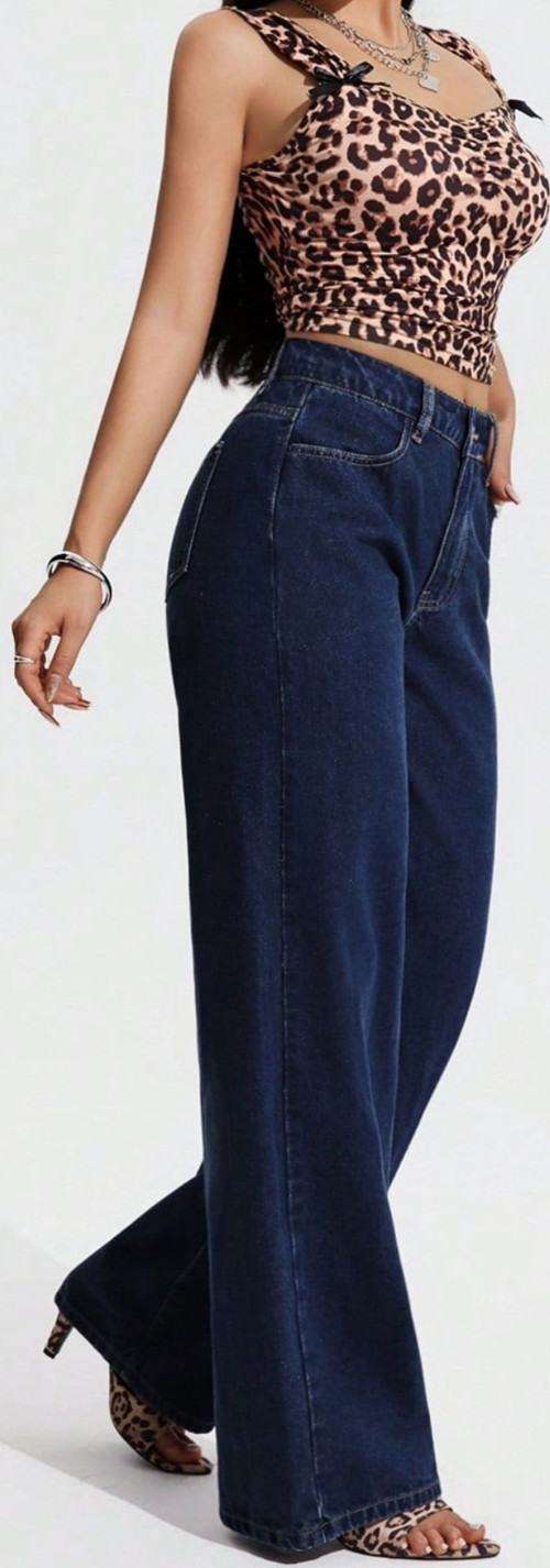 Palazzo Pantolon Koyu Lacivert Yüksek Bel Geniş Paça Bol Kesim Premium Jeans