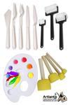 Artlantis Palet Rulo Fırça Ponpon Fırça ve Plastik Spatula 4'lü Set 1 Paket Resim Hobi Sanat Etkinlik Resim Paleti