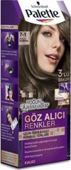 Palette Göz Alıcı Renkler Saç Boyası 7-1 Küllü Kumral Yoğun renk pigmentleriyle güçlendirilmiş formülü saça derinlemesine nüfuz ederek rengi sabitler ve soğun parlaklık sağlar. Keratin, Pantenol ve Besleyici Yağlar içeren 3'lü bakım etkisi ile saça yoğun bakım yapar.