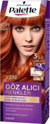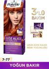 Palette Göz Alıcı Renkler Saç Boyası 7-77 Yoğun Bakır Yoğun renk pigmentleriyle güçlendirilmiş formülü saça derinlemesine nüfuz ederek rengi sabitler ve soğun parlaklık sağlar. Keratin, Pantenol ve Besleyici Yağlar içeren 3'lü bakım etkisi ile saça yoğun bakım yapar.